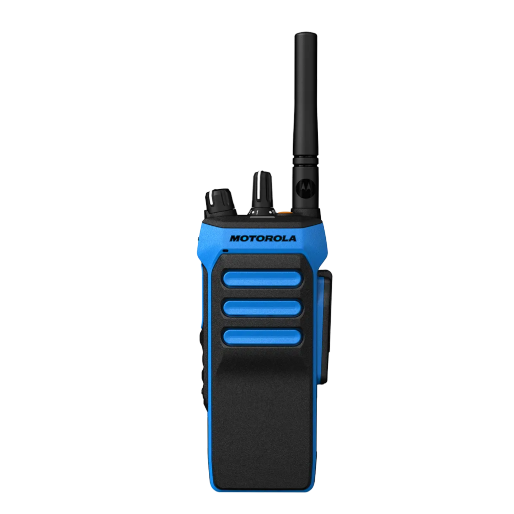 Ambientes industriais frequentemente apresentam níveis elevados de ruído causados por máquinas, equipamentos pesados e processos operacionais intensos. O MOTOTRBO R7Ex utiliza supressão de ruído treinada com IA, cancelamento de ruído do microfone único (SINC+) e supressor automático de retorno acústico para melhorar a inteligibilidade das chamadas. Com potência de saída de áudio de até 2,5 W e sonoridade programável de até 108 fons, o rádio proporciona comunicação clara mesmo em cenários de alto ruído, contribuindo para maior segurança e eficiência operacional.